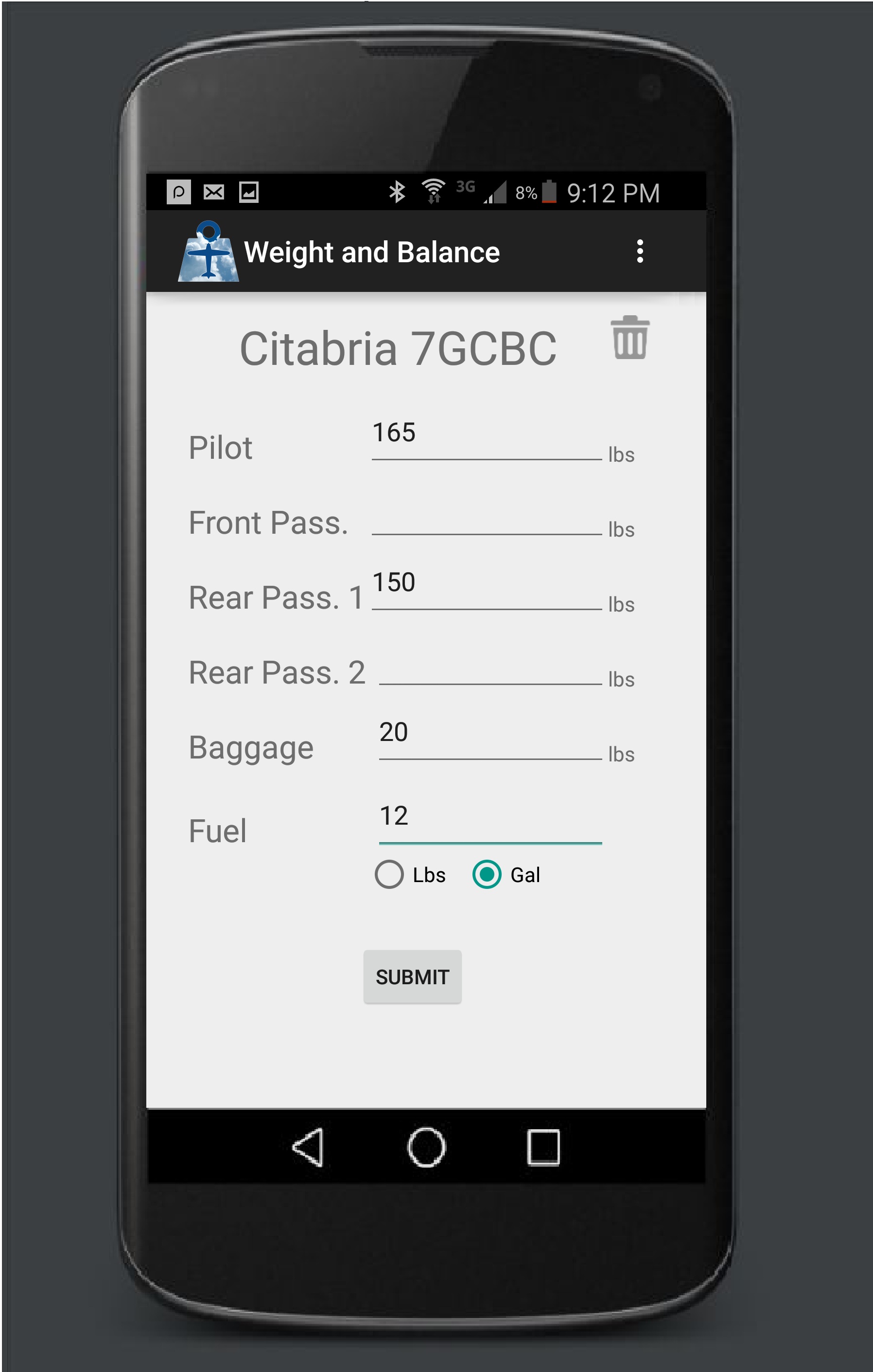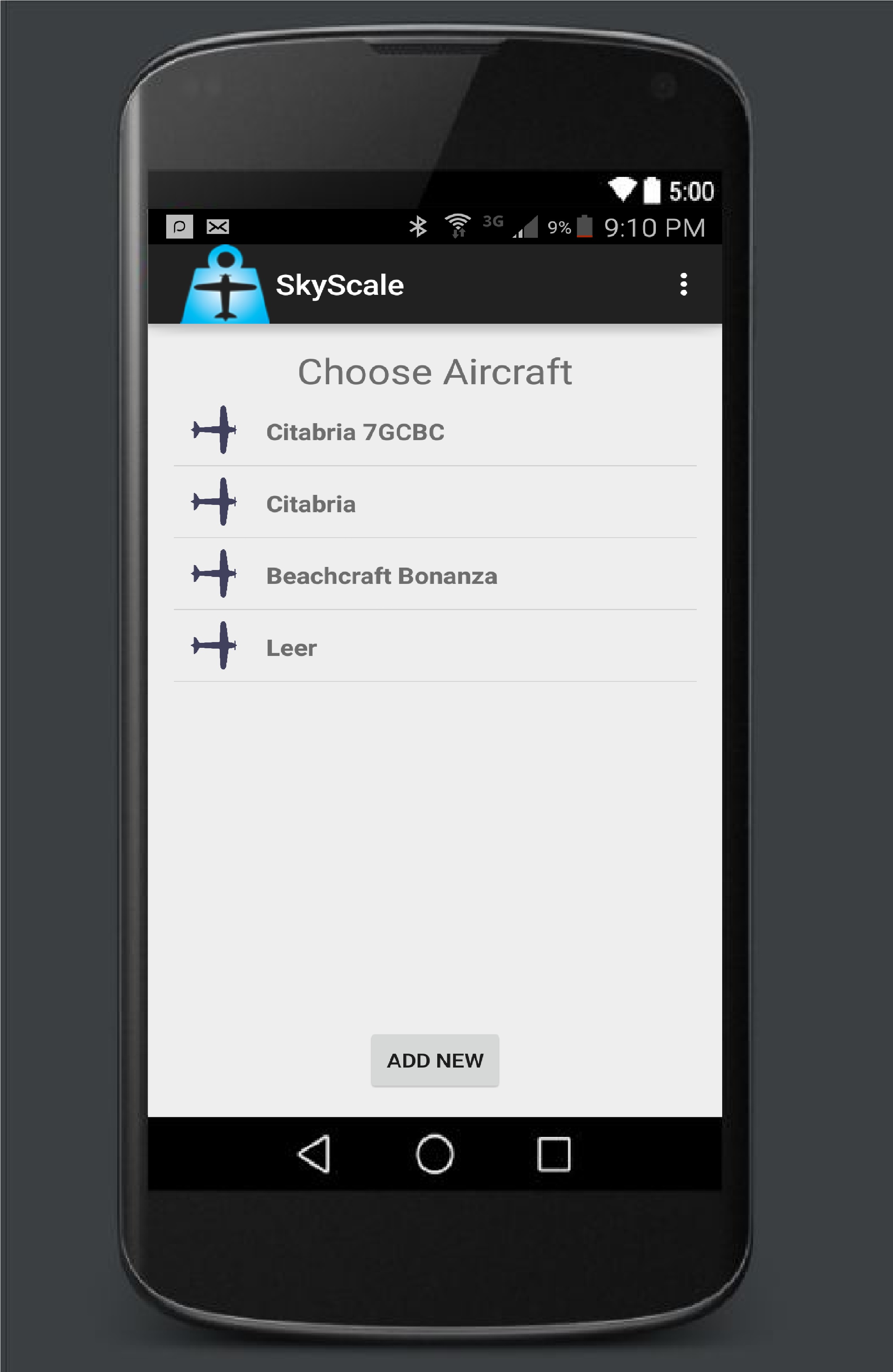 SkyScale is an Android App developed for use by general aviation pilots. It calculates aircraft weight and balance, and alerts the pilot both graphically and textually of current loading.
